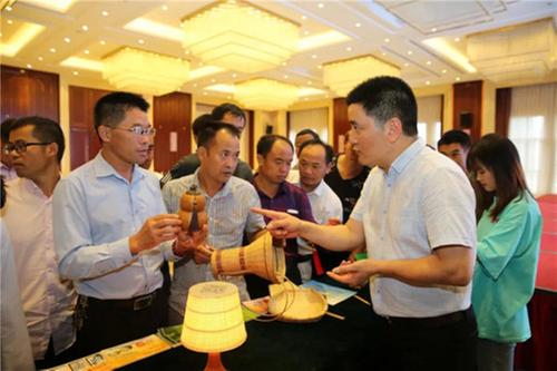 全國(guó)勞動(dòng)模范陳嵐在向世界友人介紹青神竹編