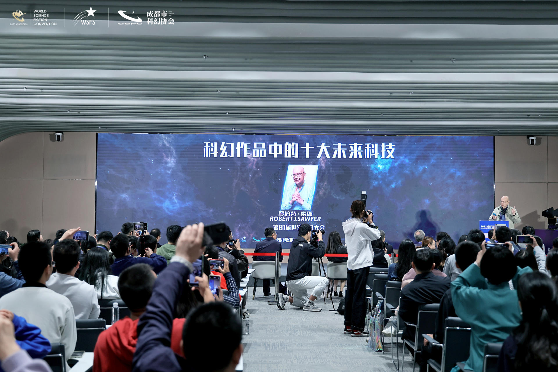 10月22日上午,2023成都世界科幻大會(huì)重磅子活動(dòng)——“科幻作品中的十大未來(lái)科技”在成都正式發(fā)布。著名科幻作家劉慈欣、江波,著名科幻學(xué)者劉兵、嚴(yán)鋒、吳巖,評(píng)選活動(dòng)顧問(wèn)、加拿大著名科幻作家羅伯特·索耶及夫人克林克·卡洛琳·喬安,評(píng)選活動(dòng)顧問(wèn)、美國(guó)著名科幻編輯、雨果獎(jiǎng)最佳短篇小說(shuō)編輯尼爾·克拉克等現(xiàn)場(chǎng)分享了評(píng)選過(guò)程和感受。