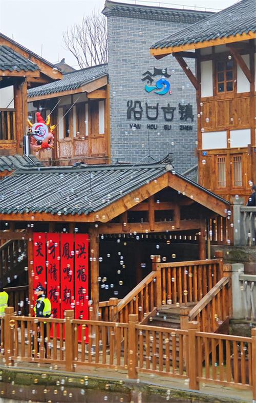 除了用腳步“丈量”古鎮(zhèn),沉浸式體驗(yàn)更值得推薦。“萬家燈火” “游園奇夢(mèng)”“古鎮(zhèn)嗨歌”“國(guó)潮演藝”“歡喜燈謎”等國(guó)風(fēng)體驗(yàn)活動(dòng)讓春節(jié)喜慶的節(jié)日氛圍愈顯濃厚。“我是單身,把繡球拋給我。”在古鎮(zhèn)街口舉行的“拋球招親”現(xiàn)場(chǎng)人山人海、熱鬧非凡;半邊街川劇院外的歡喜燈謎、詩話擂臺(tái)等活動(dòng),同樣讓游客沉浸式體驗(yàn)傳統(tǒng)文化魅力。