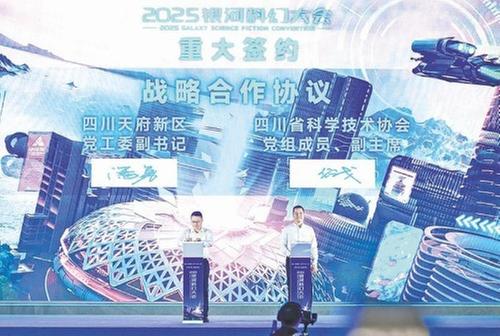 開幕式現(xiàn)場還進行了9項覆蓋科幻全產(chǎn)業(yè)鏈的重要簽約,簽約、投資總產(chǎn)值超億元。其中,四川省科協(xié)與四川天府新區(qū)管委會簽訂戰(zhàn)略合作協(xié)議,雙方將通過銀河科幻大會連續(xù)五屆落戶四川天府新區(qū),共同建強世界一流科幻活動品牌,通過導(dǎo)入全球優(yōu)質(zhì)科幻資源,推動科幻IP就地轉(zhuǎn)化、科幻賦能文旅發(fā)展。四川科幻世界雜志社有限公司分別與閱文集團(“青年科幻作家培育計劃”)、京東圖書(“科幻領(lǐng)航計劃”)、四川省文化大數(shù)據(jù)有限責(zé)任公司(“共建科幻數(shù)據(jù)集”)等達成多項產(chǎn)業(yè)合作,另有“稻城星河”天文科普游文旅項目(與稻城縣人民政府)、影視項目(《攬月》)、科幻文化國際交流(與美國《軌跡》雜志)、版權(quán)合作(與成都悟空文化傳媒有限公司)等簽約,覆蓋科幻創(chuàng)作、數(shù)字出版、科幻文旅、科幻影視、國際傳播等全鏈條。這標(biāo)志著四川科幻產(chǎn)業(yè)徹底跳出“辦活動、賺流量”的“活動經(jīng)濟”局限,進入“創(chuàng)作—轉(zhuǎn)化—落地—反哺”的“生態(tài)經(jīng)濟”新階段。