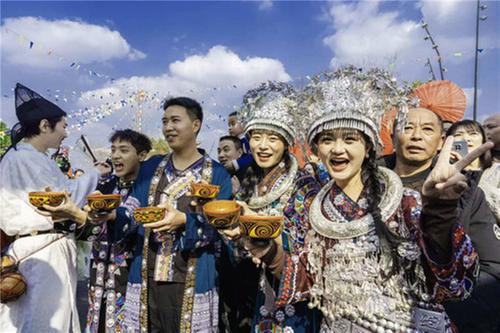 馬邊彝族自治縣也是苗族聚居地,此次活動(dòng)不僅帶來了彝族文化,還帶來了苗族文化的展示。在大廟會(huì)現(xiàn)場,游客們?cè)谏碇缱宸椀鸟R邊表演者們的帶領(lǐng)下,體驗(yàn)攔門酒、竹竿舞和蘆笙舞等特色民俗活動(dòng),在身著鮮艷奪目苗族服飾的馬邊表演者們帶領(lǐng)下,載歌載舞共慶新春佳節(jié)。