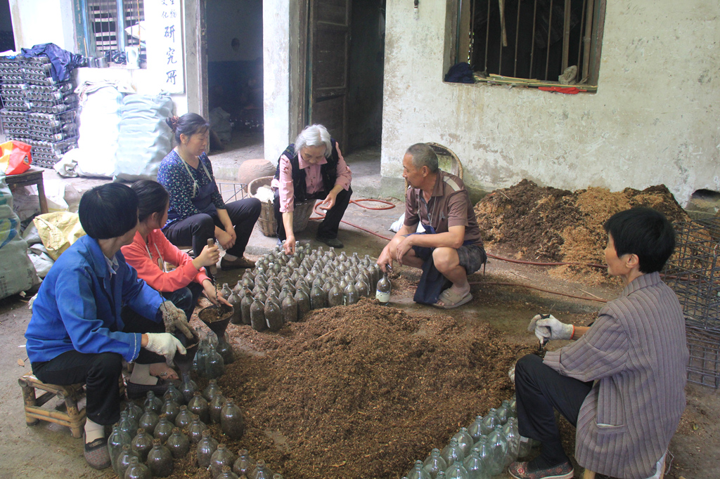 為此,黃文培牽頭建立了竹蓀科研小組,面對(duì)一次次挫折與失敗,科研小組的人一個(gè)又一個(gè)打起了退堂鼓。她沒(méi)有氣餒,沒(méi)有放棄,先后與南京林學(xué)院、四川省農(nóng)科院等科研院校合作,從采集野生菌絲培育——段木栽培——熟料滅菌栽培——生料層播引種、試種,最后到采取竹海野生竹蓀蛋進(jìn)行菌種分離、馴化、提純、選優(yōu),年復(fù)一年,做了無(wú)數(shù)次比照試驗(yàn),究竟流了多少汗?熬了多少夜?餓了多少餐?她也說(shuō)不清楚了。