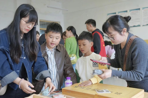 活動(dòng)現(xiàn)場,內(nèi)江市地理科普基地的老師圍繞巖石知識(shí)展開科普,詳細(xì)講解了巖石的種類、形成過程及相關(guān)科學(xué)常識(shí),帶領(lǐng)大家走進(jìn)巖石的世界,讓參與者對(duì)不同種類的巖石有了系統(tǒng)認(rèn)識(shí)。為了讓科普知識(shí)更易被接受和掌握,活動(dòng)還設(shè)置了趣味互動(dòng)環(huán)節(jié),通過“巖石照片與標(biāo)本對(duì)應(yīng)”小游戲、巖石小知識(shí)問答等形式,充分調(diào)動(dòng)孩子們的積極性,讓大家在輕松愉快的氛圍中鞏固所學(xué)知識(shí)。隨后,大家有序參觀了地質(zhì)科普室,近距離欣賞各類巖石及化石標(biāo)本,直觀感受地球地質(zhì)演變的奇妙,不少孩子駐足觀察、認(rèn)真詢問,對(duì)地質(zhì)科學(xué)的好奇心被充分激發(fā)。