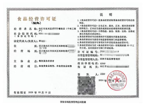 (林先生的餐飲店食品經(jīng)營(yíng)許可證圖片)
