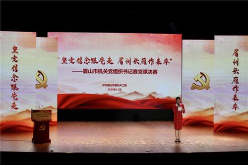 今年6月,眉山市直機關啟動了“堅定信念跟黨走眉州頭雁作表率”黨組織書記賽黨課活動,決賽當日就是此次活動的“壓軸之作”,也是眉山市第一次組織開展黨組織書記賽黨課比賽,深受黨員代表歡迎和好評。