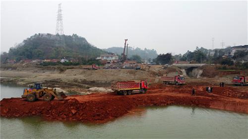 2月1日,在眉山市彭山區(qū)尖子山航電樞紐工程項目現(xiàn)場,左岸正在進(jìn)行拌和系統(tǒng)、臨電系統(tǒng)建設(shè),按確定的計劃進(jìn)行實施臨時圍堰的填筑。