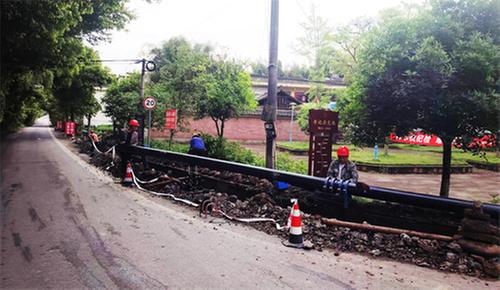 正在施工現(xiàn)場(chǎng)查看工程進(jìn)展的洪雅縣善上水務(wù)投資有限公司董事長李庚祥介紹:“項(xiàng)目施工使用的管道具有更長的使用壽命和更強(qiáng)的承壓能力。項(xiàng)目建成后 能與老管網(wǎng)形成環(huán)線,確保末端用戶用水安全。”