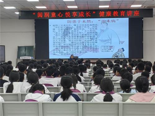 現(xiàn)場邀請到南江縣疾病預(yù)防控制中心副主任醫(yī)師郭春燕以《健康青春 幸福一生》為題,通過生動的語言、圖文并茂的PPT、典型案例分析、課堂交流答疑等形式,從健康中國2030和健康素養(yǎng)66條、中小學(xué)生健康促進(jìn)行動、健康行為養(yǎng)成和健康危險因素、青年的責(zé)任等方面為學(xué)生詳細(xì)講解了多個維度的身心健康的科普知識,引導(dǎo)同學(xué)們正確面對青春期的身心變化和成長中的困惑,增強自我保護(hù)意識,提高身心健康水平。講座中,學(xué)生們認(rèn)真聆聽,在輕松的氛圍中增長知識、消除困惑,建立了初步的科學(xué)成長認(rèn)知,為青春成長注入了自信和力量。