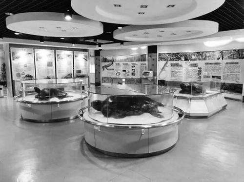 二層為爬行動物主題館:重點(diǎn)介紹了脊椎動物“成功登陸”的進(jìn)化意義和爬行動物的相關(guān)知識,展示有代表性的爬行動物標(biāo)本和模型,包括棱皮龜、玳瑁、揚(yáng)子鱷等珍稀爬行動物標(biāo)本等。