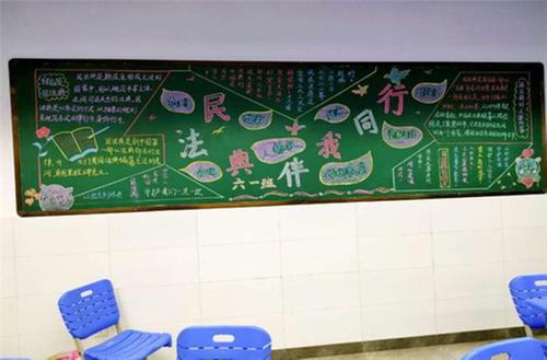 加強(qiáng)校內(nèi)法制宣傳,營造出濃濃學(xué)法氛圍。利用電子顯示屏,黑板報,手抄報等方式弘揚(yáng)憲法精神 。
