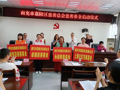 嘉陵區(qū)慈善總會會長劉順軍宣讀了南充市嘉陵區(qū)慈善總會基金管理辦法,并宣布了鳶尾花慈善基金、卓錦慈善基金、永越慈善基金、上善社區(qū)發(fā)展基金四個冠名基金正式成立。