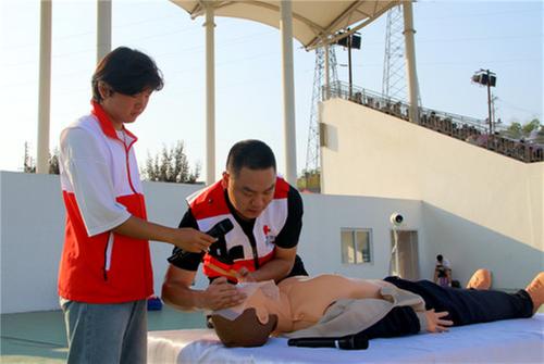 圖為工作人員為師生講解應(yīng)急救護(hù)知識。雍沛 攝