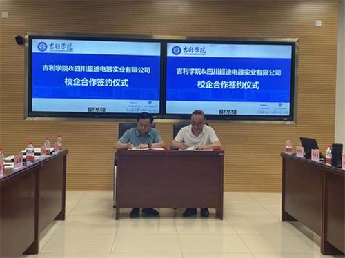 吉利學(xué)院校長助理邊保旗、四川超迪電器實(shí)業(yè)有限公司董事長吳國金代表校企雙方簽署校外實(shí)踐教育基地合作協(xié)議,雙方將合作培養(yǎng)機(jī)械設(shè)計(jì)制造及其自動(dòng)化、機(jī)器人工程、智能制造洗衣機(jī)及電器相關(guān)專業(yè)人才。