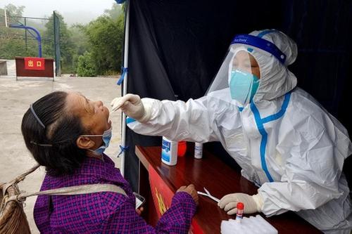 宋天銀在為群眾做核酸檢測(cè)采樣
