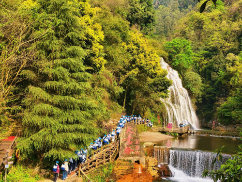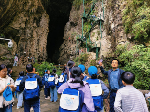 在天意谷地質(zhì)公園,學(xué)生化身“小小地質(zhì)勘探員”,沿著蜿蜒步道穿行于峽谷之間,近距離觀察瀑布、溶洞、陡崖等地貌,了解地質(zhì)演變過程以及地質(zhì)構(gòu)造運(yùn)動對地貌的影響,解鎖地球演化的神奇密碼。
