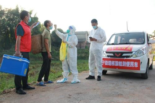 核酸檢測(cè)便民車一會(huì)兒穿梭在田間地頭、一會(huì)兒又駛進(jìn)農(nóng)家院壩,好似一道奮勇抗疫的美麗流動(dòng)風(fēng)景線。