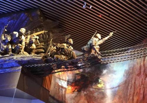 公共空間設(shè)計模數(shù)與建筑模數(shù)嚴(yán)格對應(yīng),推敲主題畫作在空間中的尺度關(guān)系;地面選用雅安紅石材(紅軍紅)與紅色為主基調(diào)的長城畫作呼應(yīng),教育后人不忘革命史,走好新的長征路。