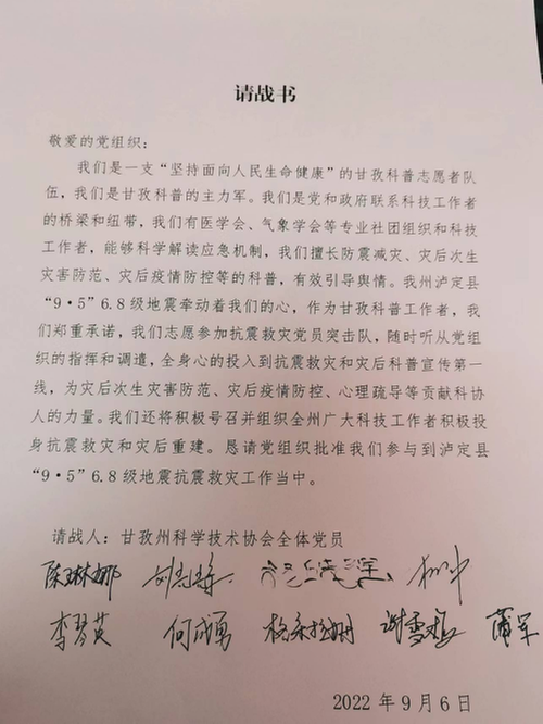 9月5日12時52分,甘孜州瀘定縣發(fā)生6.8級地震,震源深度16公里。地震發(fā)生后,按照甘孜州瀘定縣“9.5”抗震救災(zāi)指揮部工作部署,甘孜州州科協(xié)迅速行動,專題研究部署各項工作,組建工作專班,組織動員全州科協(xié)系統(tǒng)積極參與到抗震救災(zāi)中。