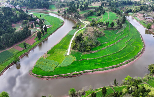 3月24日,在四川省內(nèi)江市東興區(qū)順河鎮(zhèn)冷家村,當(dāng)?shù)丶Z農(nóng)不誤農(nóng)時(shí),及時(shí)進(jìn)行小麥科學(xué)管護(hù)作業(yè)(無人機(jī)照片)。
