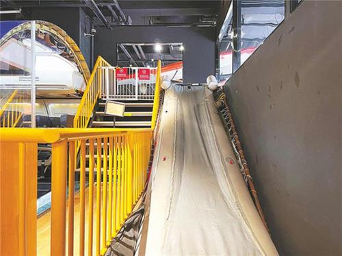 當飛機發(fā)生事故時,還有一種裝置也非常重要,可以使乘客在緊急情況下迅速安全的撤離,這便是應(yīng)急滑梯。以前,探班員只在科普視頻中看見過這種滑梯,但在博物館內(nèi),探班員不僅親眼看到了,還親身體驗了一下。