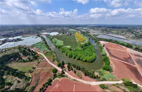 4月2日,內(nèi)江市東興區(qū)石子鎮(zhèn)太和村,金黃的黃花風(fēng)鈴木在春日的暖陽下熠熠生輝,與周邊農(nóng)田、村莊共同構(gòu)成了美麗的鄉(xiāng)村畫卷。