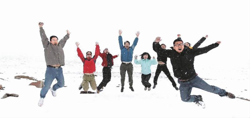 朱創(chuàng)業(yè)和學(xué)生在貢嘎雪山