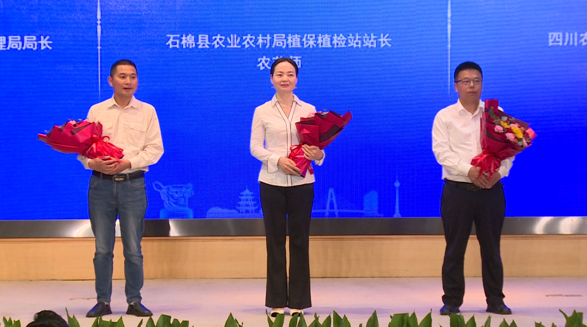 舞臺(tái)上,站在趙聯(lián)軍右手邊的是石棉縣農(nóng)業(yè)農(nóng)村局植保植檢站站長、農(nóng)藝師蔣凌萍。與趙聯(lián)軍用腳步丈量青山不同,她把美好青春年華都獻(xiàn)給了美麗鄉(xiāng)村。
