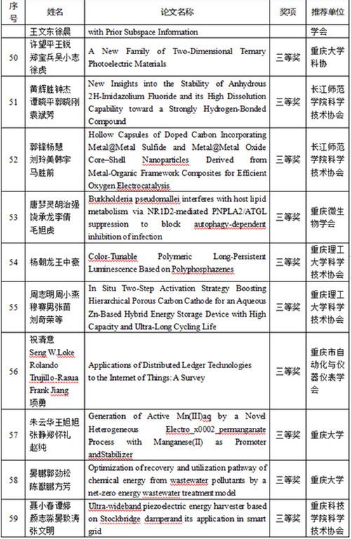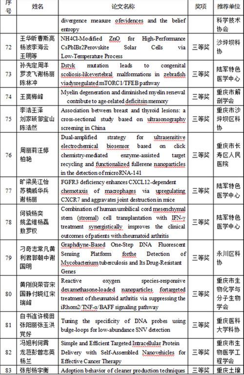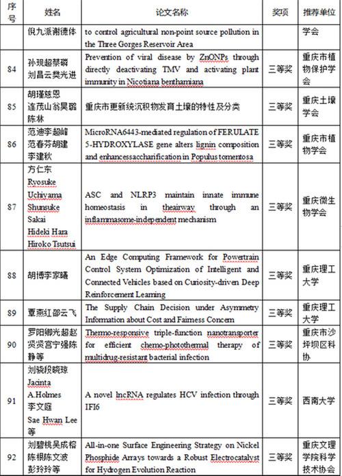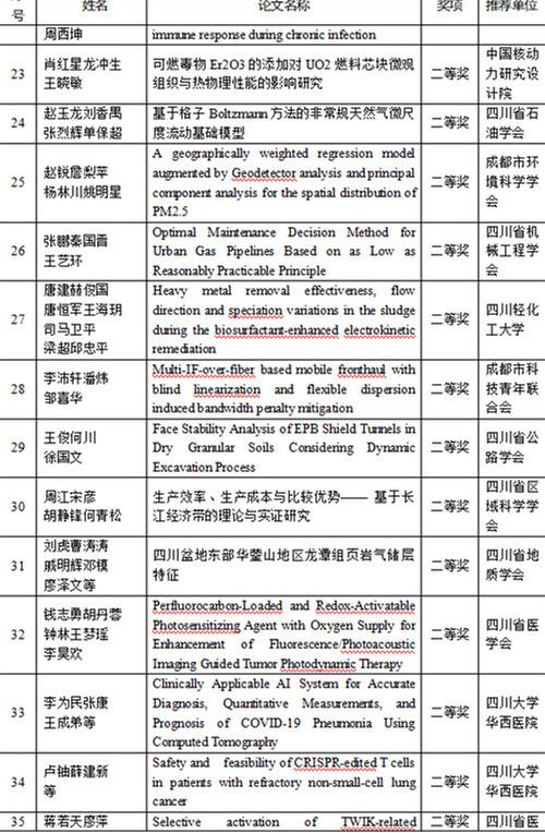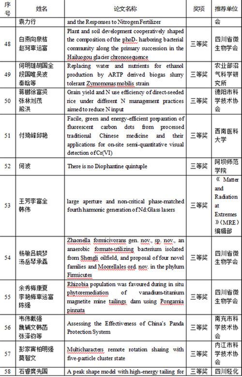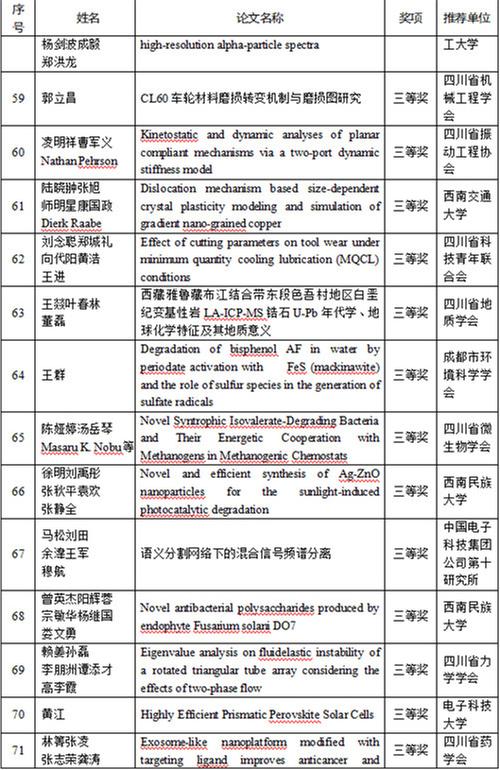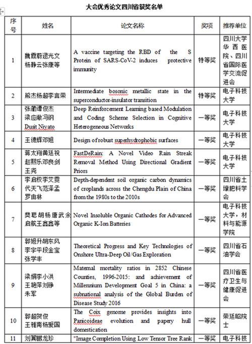 開幕式上,四川省科協(xié)和重慶市科協(xié)聯(lián)合發(fā)布了年度川渝一流學(xué)會20個、年度川渝最具影響力學(xué)術(shù)活動20個、首屆川渝科技學(xué)術(shù)大會優(yōu)秀論文特等獎、一等獎、二等獎、三等獎,參會領(lǐng)導(dǎo)為獲獎作者代表頒獎。