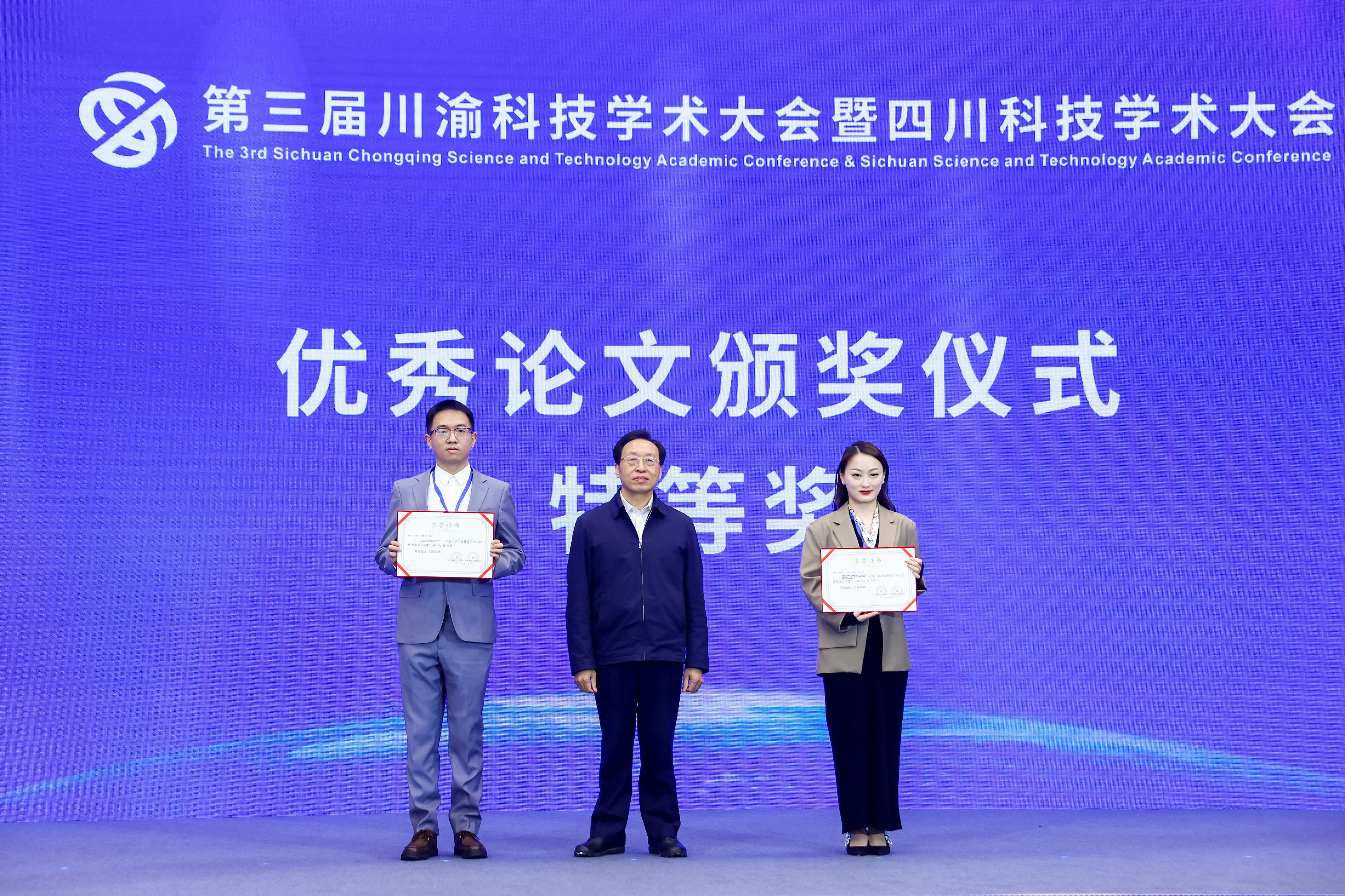 開幕式上,發(fā)布了第三屆川渝科技學(xué)術(shù)大會(huì)優(yōu)秀論文184篇、年度川渝一流科技期刊20家、年度川渝最具影響力學(xué)術(shù)活動(dòng)20項(xiàng)、年度川渝一流學(xué)會(huì)20個(gè),并為獲獎(jiǎng)代表頒獎(jiǎng)。大會(huì)優(yōu)秀論文獲獎(jiǎng)代表、四川省腫瘤醫(yī)院主治醫(yī)師陳梅華,川渝最具影響力學(xué)術(shù)活動(dòng)獲獎(jiǎng)代表、重慶市產(chǎn)學(xué)研合作促進(jìn)會(huì)秘書長(zhǎng)陳潔作了交流發(fā)言。