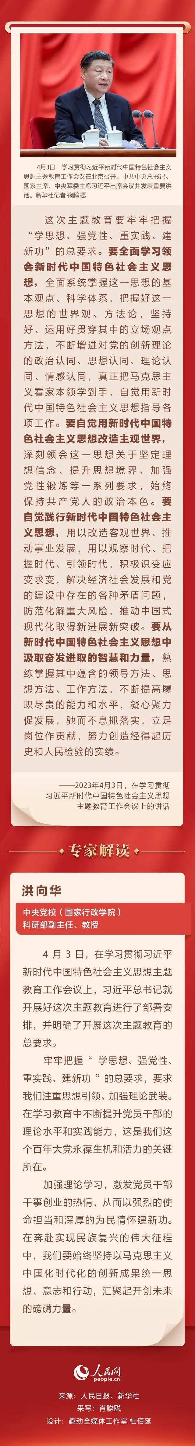 4月3日,學(xué)習(xí)貫徹習(xí)近平新時代中國特色社會主義思想主題教育工作會議在北京召開。中共中央總書記、國家主席、中央軍委主席習(xí)近平出席會議并發(fā)表重要講話。習(xí)近平強(qiáng)調(diào),這次主題教育要牢牢把握“學(xué)思想、強(qiáng)黨性、重實踐、建新功”的總要求。人民網(wǎng)邀請專家進(jìn)行解讀。